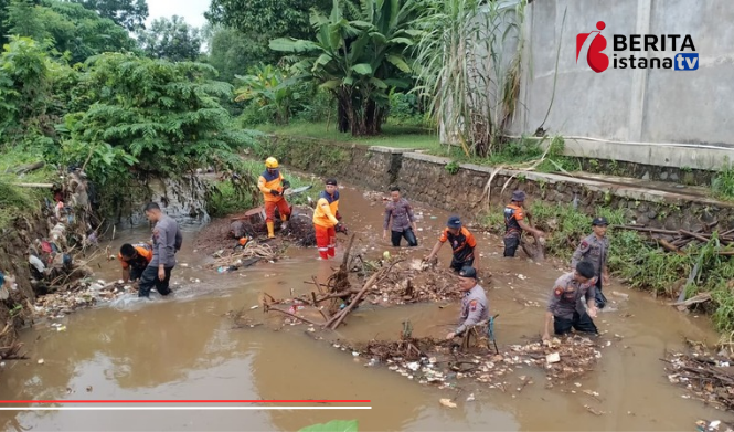 Antisipasi Banjir, Polisi Terjun ke Sungai Bersihkan Sampah
