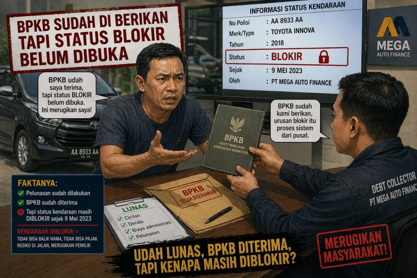 SRAGEN – Praktik yang diduga dilakukan oleh debt collector dari PT Mega Auto Finance menuai kecaman keras. Seorang warga Sragen, Warsito, mengaku dirugikan dan dibuat resah setelah status kendaraan miliknya masih dalam kondisi diblokir, meski pelunasan dan pengambilan BPKB telah dilakukan hampir satu tahun lalu.